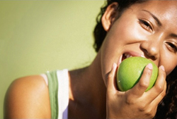 Some people still prefer the age-old home remedy of baking soda and a toothbrush to gently whiten teeth at home. Also, some foods such as celery, apples, pears and carrots trigger lots of saliva - which helps to scrub away stains on your teeth. Chewing sugar free gum also triggers saliva, which helps eliminate teeth stains. A bonus from all that saliva is that it neutralizes acid that causes tooth decay. With teeth, more saliva is better all around. |